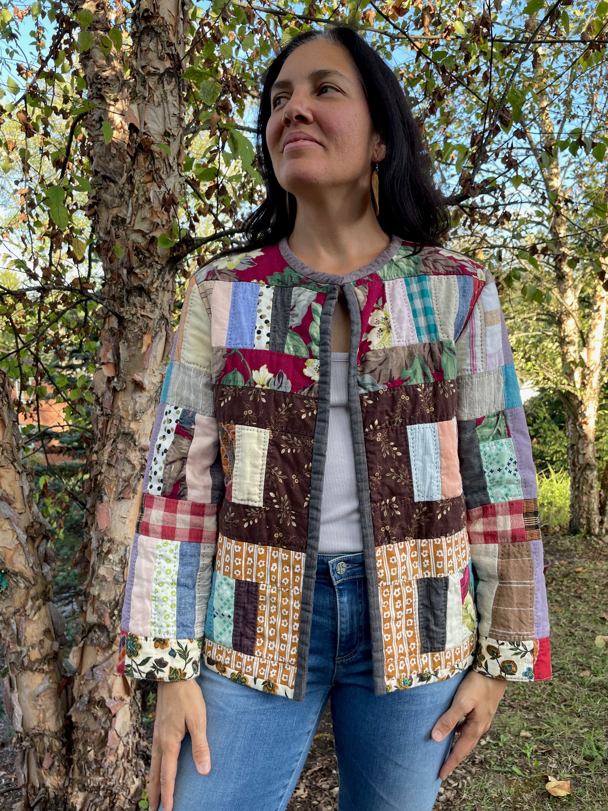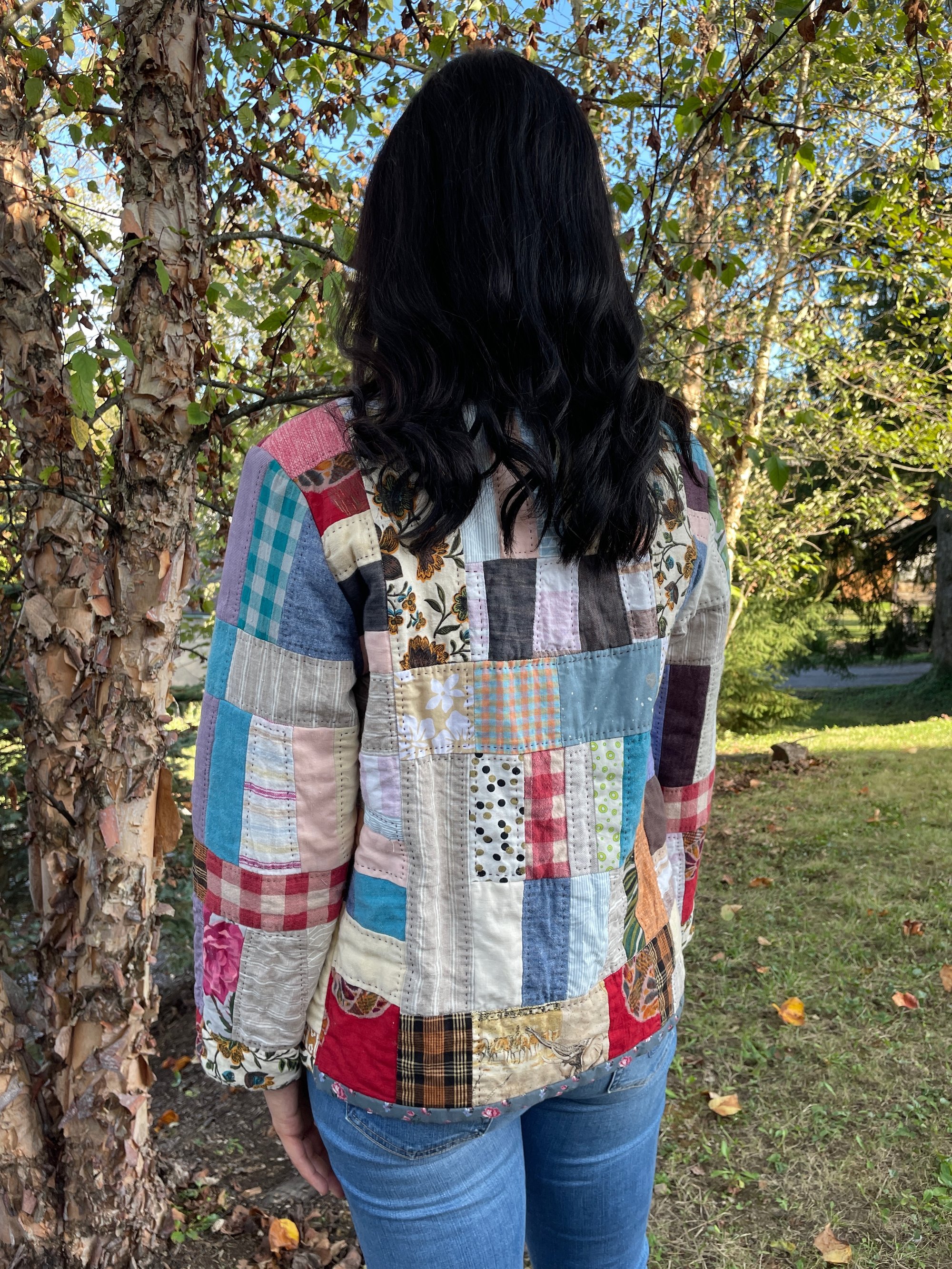 This quilt was inspired by a group of genius quilt makers from Alabama. It's a combination of disassembled linen clothing, vintage curtains, gifted yardage, and fabrics from sewing-swaps. I machine pieced and hand quilted this coat; it took about a month to make.